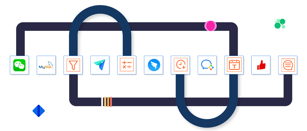 集简云可以快速扩展您现有系统的功能,例如为您的表单系统增加微信提醒,邮件提醒,短信提醒功能,为您的微信公众号增加赠送卡券同步CRM系统功能,为OA办公系统增加逻辑判断与数据存储功能等等。而这一切无需任何技术开发,简单快速地提升您系统的能力。
