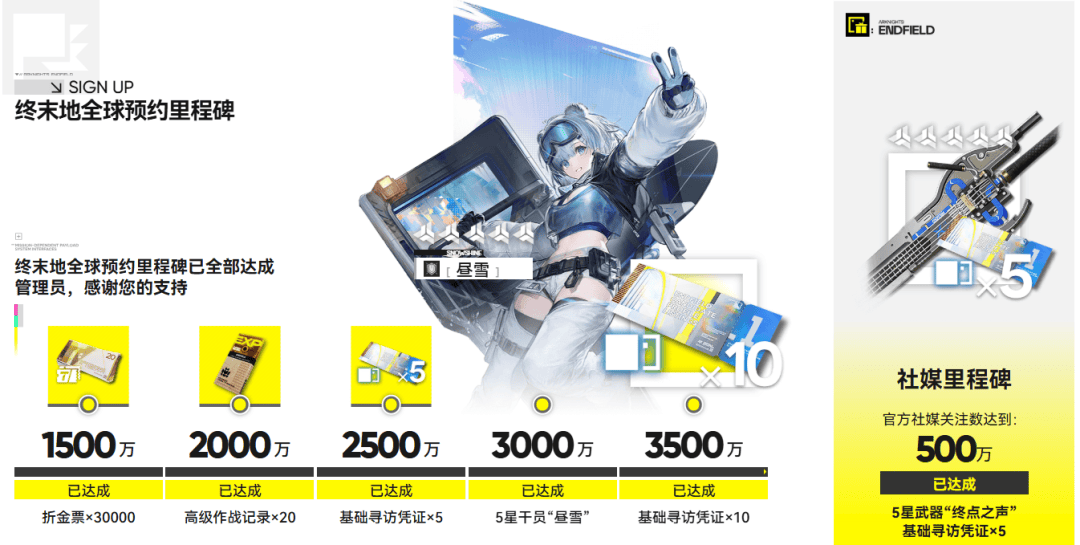 目前该作全球预约数已经达到了3500万,官方社媒关注数达到500万,可见玩家对其期待度。然而需要特别关注的是,虽然整个2025年二次元赛道较为平淡,但今年的二次元开放世界赛道却是强作如林,除了《明日方舟:终末地》,完美世界的《异环》、蛮啾网络的《蓝色星原:旅谣》以及诗悦旗下的《望月》都有望参与竞争;
