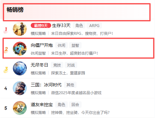 《向末日开炮》采用末日丧尸题材,底层框架类似《Last War》,早些时候已上线小游戏且受到一定关注,目前其苹果商店预约页面显示游戏将于1月31日正式推出,鉴于前作的成功,该作未来表现值得关注。