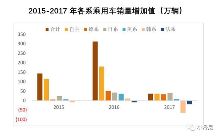 2016年是国内自主品牌乘用车的春天,销量增加值远超其他系列。但是在2017年国内自主品牌销量增加值下降明显。