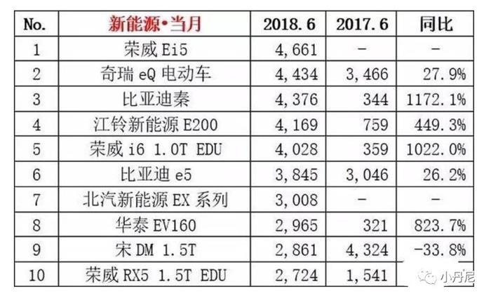 比如长安还没有一款车型进入乘联会发布的2018年6月新能源汽车零售销量前10。