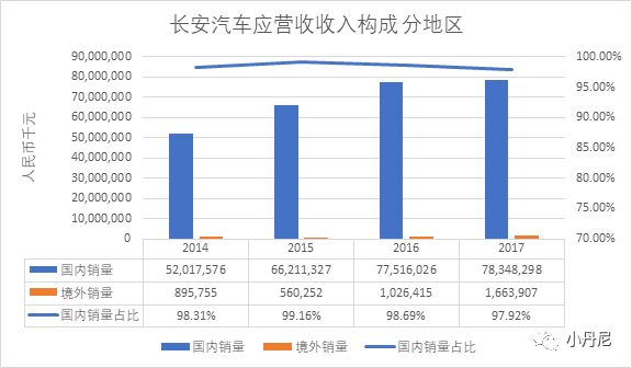 那就指望着新能源汽车埋下的“革命火种”:长安的新能源汽车销量大幅提升,2017年全年销售突破6万辆,虽然同比提升180%,但是基数比较小。